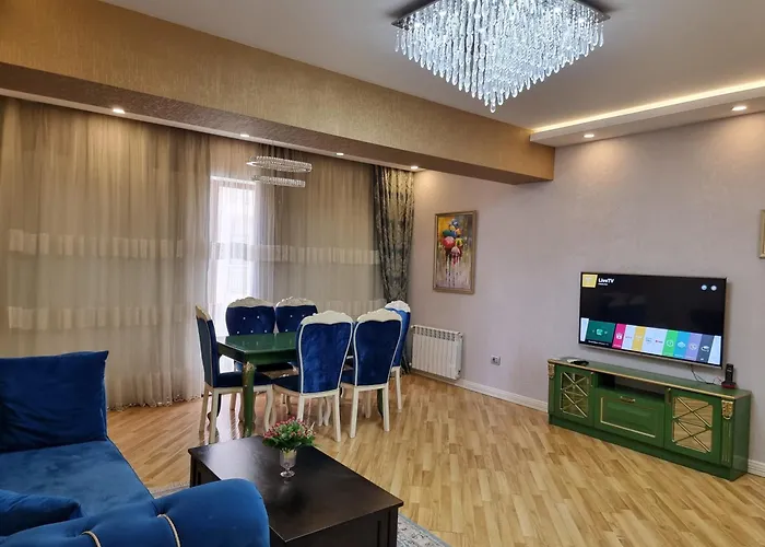 Die 70 m² große Ferienwohnung Park Azure By Aztur 0011 Baku liegt ca. 3 Kilometer vom Jungfrauenturm entfernt und bietet einen Blick auf den Garten. Das Apartment verfügt über eine Terrasse und einen privaten Swimmingpool, wo sich die Gäste gut entspannen können.
